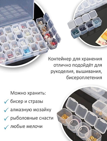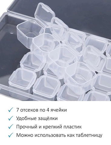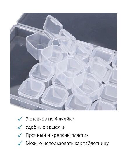 • Подходит этот органайзер и для страз. Создание алмазной мозаики или украшений для ногтей станет простой и приятной задачей, когда все нужное под рукой.