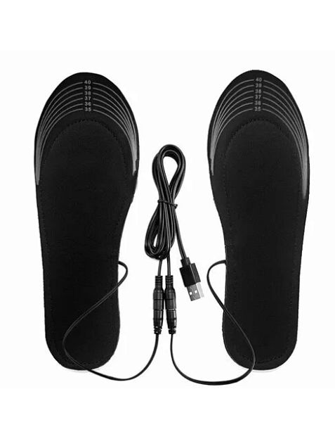 Вовремя согреться Вам помогут USB стельки с подогревом, особенно пожилым людям, военнослужащим, рыбакам, охотникам, туристам, и просто гуляющим в холодную погоду. Замерзшие ноги не только доставляют болезненные ощущения и дискомфорт, но еще и прямая угроза здоровью! Утепленные стельки согреют Ваши ноги в зимний и осенний период . Зимние стельки с подогревом USB работают от любого внешнего портативного источника питания: компьютер, Power Bank, ноутбук. Стельки с подогревом для обуви имеют верхний слой из дышащего нетканого материала, поддерживающего идеальный микроклимат стопы в диапазоне 35-50 град. Стельки с электрическим подогревом универсальные, подходят для стопы 35-46 размера. Маломерят. Утепленные стельки имеют разметочные линии, по которой можно отрезать лишнюю длину ножницами. Для полного нагревания потребуется 6-10 минут. Термостельки для обуви с подогревом эластичные, ультратонкие, толщина стельки USB составляет всего 4 мм. Электрические стельки многоразовые, их можно мыть.