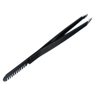 ЮниLook Пинцет с расческой для бровей/ресниц, металл, 10х1см, черный