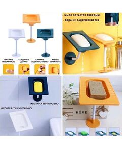 Содержит сквозные отверстия, которые позволяют воде стекать на дно, в результате чего мыльница не будет липкой и влажной, и мыло в ванной или на кухне всегда будет сухим. Надежная самоклеящаяся основа ножки отлично крепится к любой поверхности: раковине, столешнице, кафель