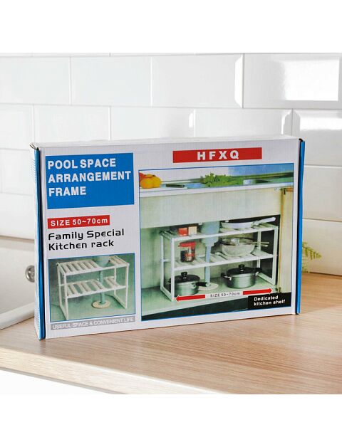 Складные стеллажи POOL SPACE - уникальный органайзер для хранения, который поможет вам увеличить свободное пространство в доме. Благодаря сборной конструкции и модульным полкам вы можете разместить ее под раковиной любой конфигурации, что добавит вам дополнительное пространство для хранения. Сборка и разборка занимают считанные секунды. Легкий и компактный позволяет перемещать полку в любое время без особых усилий.Универсальная полка идеально подходит для организации пространства в любом помещении: