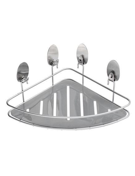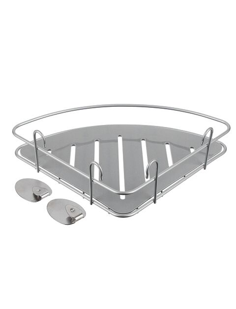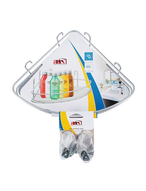 Угловая настенная одинарная полка ARTEX с пластиковым поддоном может использоваться в ванной или на кухне. Полка крепится на надежные самоклеящиеся крючки, которые имеются в комплекте. Серебристый цвет изделия универсален для ванны и впишется в любой интерьер.