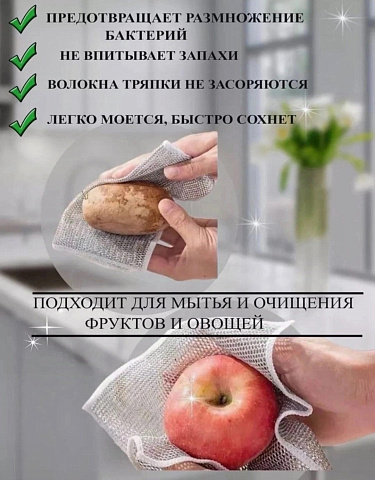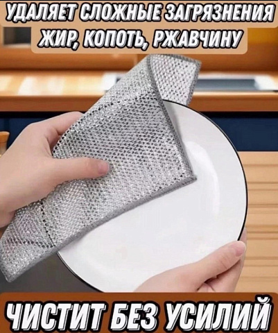 Двухслойная металлизированная салфетка для мытья посуды и уборки – незаменимый помощник на кухне и ванной комнате. Она обеспечивает эффективное и быстрое удаление грязи и жира, копоти, нагара, сохраняя при этом качество и целостность вашей посуды и поверхностей.