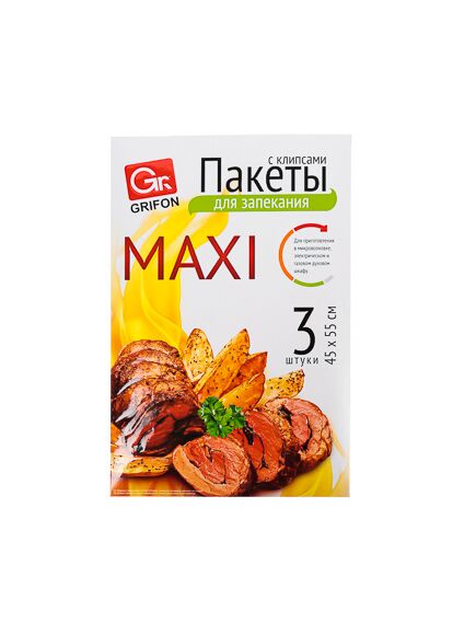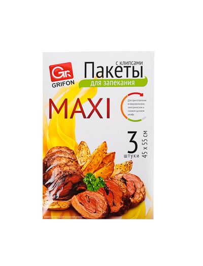 Планируете приготовить ужин для большой компании? Пакеты для запекания Grifon Maxi имеют увеличенный размер 44х55 см и позволяют приготовить сразу большое количество мяса или овощей. В упаковке имеются клипсы для пакетов. Пакеты имеют высокую прочность и подходят для приготовления блюд в микроволновке, электрическом и газовом духовом шкафу. Сохраняют вкус, аромат и пользу продуктов! 3 шт. в упаковке.