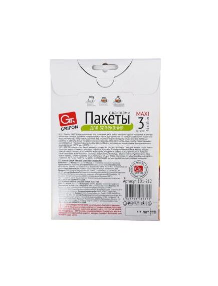 GRIFON Пакеты для запекания Maxi, 45x55см, 3шт, клипсы