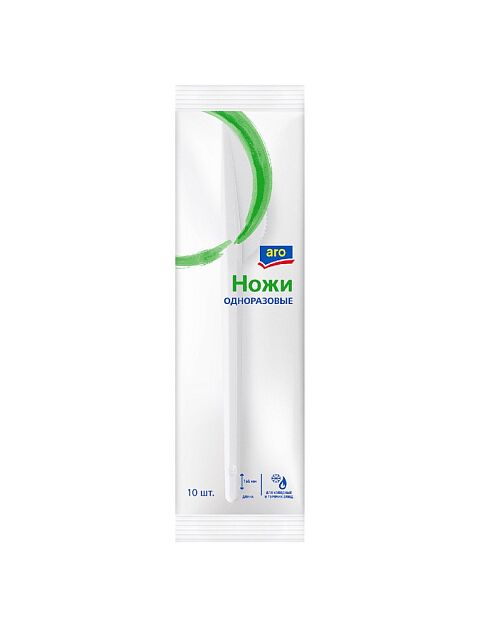 aro Ножи одноразовые белые 165 мм, 20 шт. используются на предприятиях общественного питания, в дороге, на пикнике, в домашнем и офисном обиходе. Лезвие имеет зубчики, которыми сложно порезаться, но удобно разделывать пищу. Максимальная температура используемых пищевых продуктов: 70 градусов Цельсия. Ножи подходят для оформления банкетов, выездных праздников, кафе быстрого обслуживания.