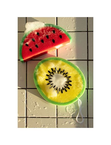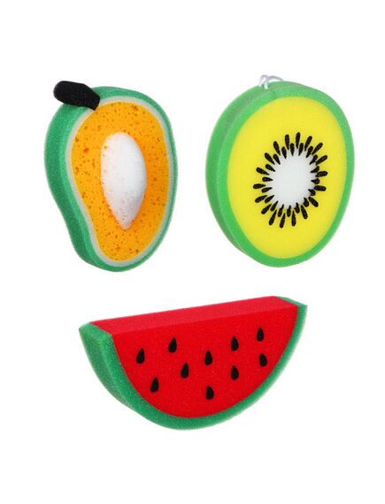 Мочалка "Экзотик", в виде киви 17х15х3см/арбуза 18х8, 5х3см/авокадо 15x10x3см, 3 дизайна