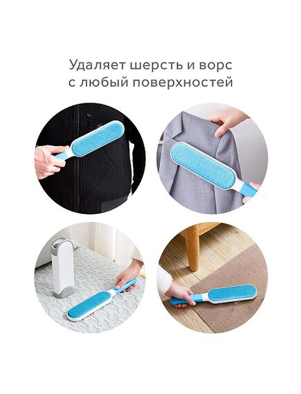 Используя щетку, вы можете без дополнительного инвентаря и особых усилий удалять шерсть, как с гладких поверхностей, так и с имеющих ворс различной длины.