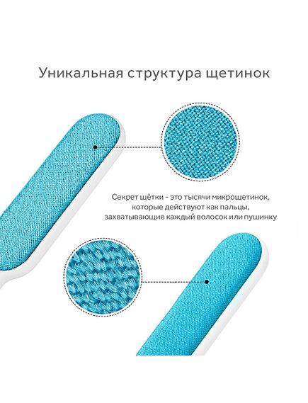 С помощью щетки вы сможете навсегда избавиться от проблемы удаления шерсти питомцев с домашних поверхностей.Благодаря своеобразной структуре щетки, содержащей тысячи микрощетинок для сбора пуха и шерсти, она имитирует сбор ворсинок пальцами, что увеличивает степень очистки поверхности.