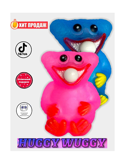 Резиновая антистресс игрушка,-персонаж из игры Попи Плейтайм (Poppy Playtime), которую обожают дети и взрослые. Теперь Хаги Ваги всегда может быть с вами рядом и станет отличным подарком к любому празднику, забавная игрушка которая поможет ребенку и взрослому снять напряжение накопленное после активного дня. Отличное качество, приятная на ощупь. Игрушка Киси Миси (Poppy Playtime Huggy Wuggy) - популярный тренд Тик тока 2021. Игрушка Хагги Вагги и Киси Миси быстро по всему миру полюбились многим детям, игрокам и геймерам после выхода игры Playtime. Сквиш игрушка Хаги Ваги и Миси Киси - весьма необычный, синий и розовый цвет, высота - 6 см. При нажатии на животик, она надувает пузырь жвачки! Это так весело, что понравится как детям, так и взрослым. Подарите своим детям классные эмоции и радость.
