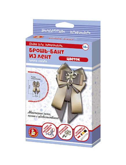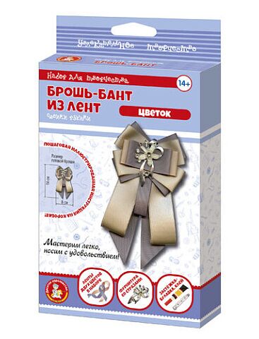 С помощью набора Брошь-бант из лент Цветок Вы сможете самостоятельно изготовить уникальную стильную брошь, которая порадует Вас или станет чудесным подарком для близких.Состав набора: