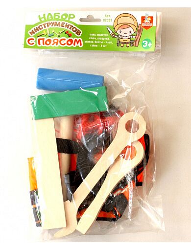 Все инструменты набора выполнены из приятного для детских рук, экологичного, прочного и безопасного материала – дерева и фанеры.