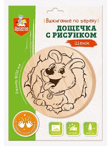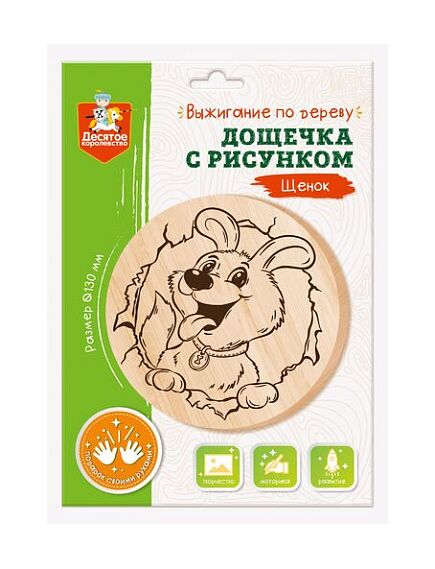 Дощечка с рисунком для выжигания «Щенок» позволит детям освоить занимательный и увлекательный вид декоративного искусства.Выжигать по дереву просто!