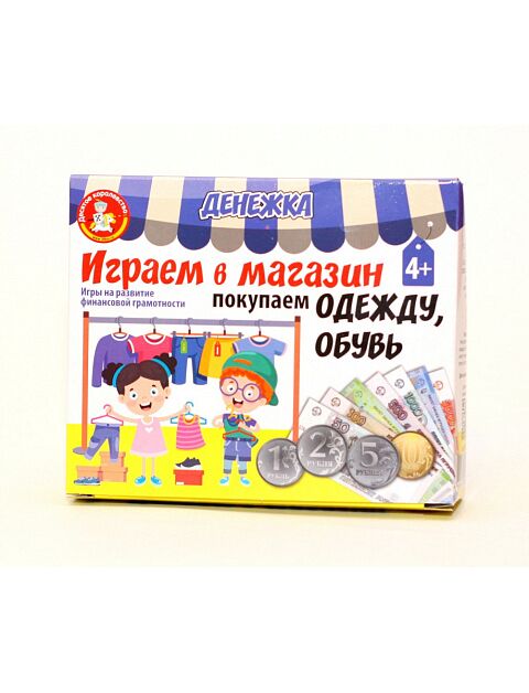 Дети играют в магазин часами.Устройте с ребёнком увлекательную игру в магазин! Покупайте и продавайте одежду и обувь, примеряя на себя роли покупателя и продавца в увлекательной игре «Денежка. Играем в магазин»!