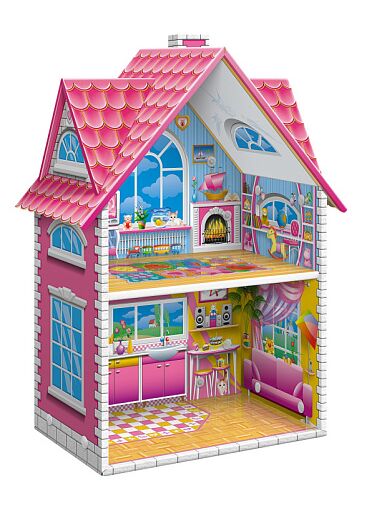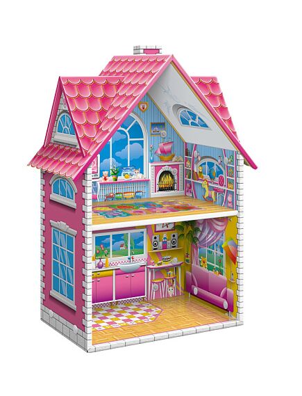 Изделие выполнено из ламинированного картона толщиной 2 мм. Рекомендуемый размер игрушек для домика – до 18 см. Куклы и аксессуары, изображенные на упаковке, в комплект не входят. Вы можете купить их дополнительно на нашем сайте.
