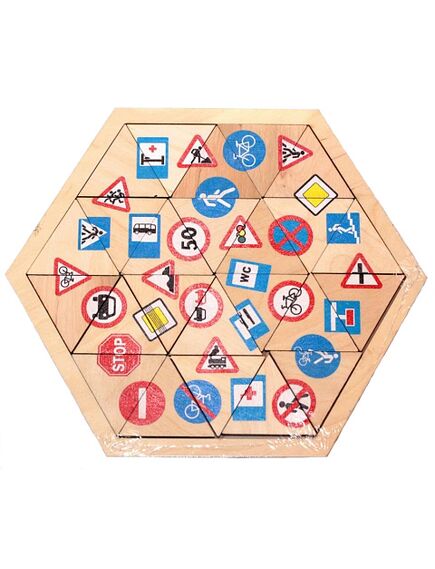 Пазл деревянный "Дорожные знаки" (Занимательные треугольники)Размеры: 0,195x0,009x0,328 м