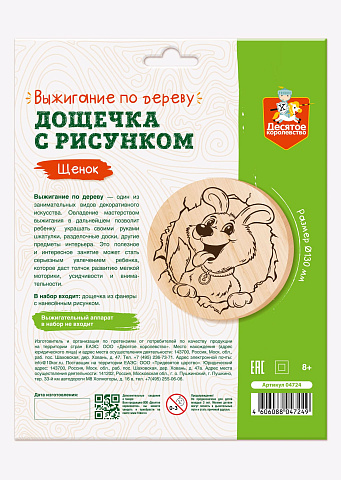 Дощечка с рисунком для выжигания «Щенок» позволит детям освоить занимательный и увлекательный вид декоративного искусства.