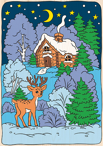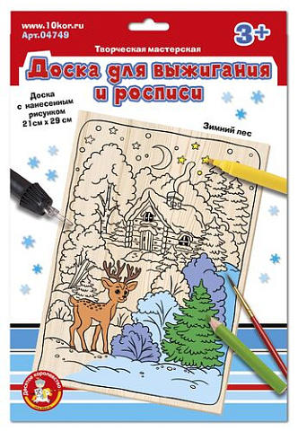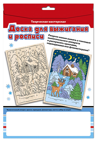 Доска с рисунком для выжигания и росписи «Зимний лес»