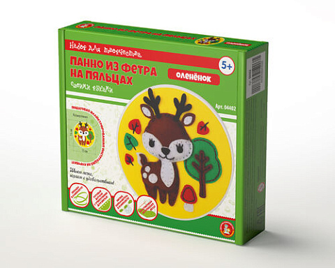Набор Панно из фетра на пяльцах «Оленёнок» развивает мелкую моторику, творческие способности ребёнка, образное мышление, фантазию и чувство цвета. -