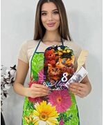 Подарочный набор 8 Марта - доска разделочная, лопатка, набор прихваток, сувенир-купюра