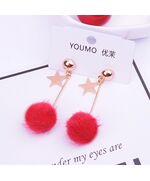 Серьги Шарики пушистые со звездочкой Цвет красный Арт. С-02