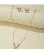 Набор цепочка с подвеской + серьги гвоздики Бабочки розовые Цвет золото Арт. Н-07