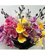 Цветы искусственные декоративные Букет орхидей (5 веток 20 цветков) крупные листья + побеги 42 см