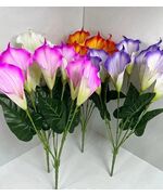 Цветы искусственные декоративные Каллы (7 цветков, крупные листья, цвета в ассортименте) 65 см