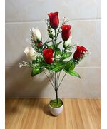 Цветы искусственные декоративные Розы с белыми цветочками (9 бутонов) 58 см