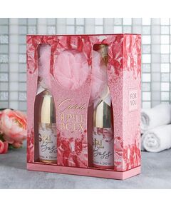 Набор "Сияй ярче всех!": гель для душа, 250 мл, аромат шампанского; шампунь для всех типов волос, 250 мл; мочалка