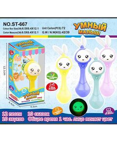 Меня зовут Умный Малыш. Я буду верным другом с первого дня жизни малыша и познакомлю с миром звуков и цветов.Меня очень удобно брать маленькими ручками, можно бросать и грызть мои ушки. Посмотри сам, что я умею!