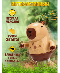 Музыкальная танцующая капибара со световыми и звуковыми эффектами обязательно привлечет внимание Вашего ребенка. Яркая подсветка, веселая музыка очень нравятся детям.Игрушка имеет 2 режима работы : 1 режим: включена только подсветка и игрушка может использоваться как детский ночник или подсветка...