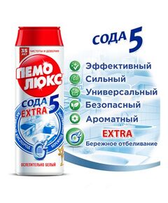 Чистящее средство Пемолюкс ослепительно белый, 400 г поможет вам без особых усилий поддерживать дом в чистоте. Инновационная формула Сода 5 позволяет этому средству эффективно справляться с устранением загрязнений с керамики, фаянса, нержавеющих и эмалированных поверхностей. Порошкообразное...