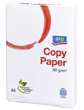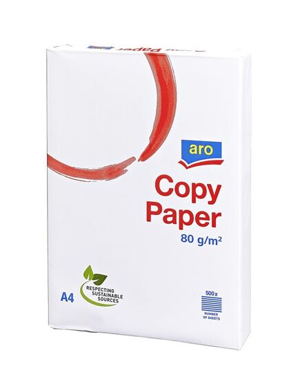 Офисная бумага aro формата A4 с плотностью 80 грамм на квадратный метр приходится на учебе, в хозяйстве и на работе. Изготовлена в Финляндии. Подходит для использования на принтере, копировальном автомате, письма от руки или рисования. Обладает оптимальными характеристиками гладкости, белизны и непрозрачности. Листы плотные, долгое время сохраняют первоначальный внешний вид.