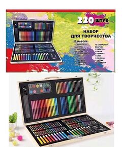 Набор для творчества" художественный набор на 220 предметов в самом элегантном и практичном деревянном чемоданчике, подходящем и мальчикам и девочкам безупречный подарок или сюрприз для своих любимых творческих талантливых деток!Наполнение: 40 восковых пастелей 40 масляных пастелей 36...