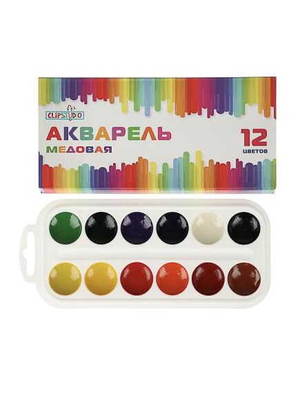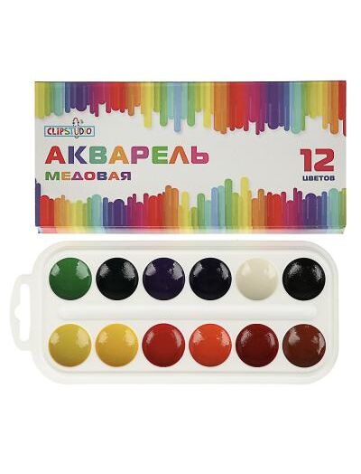 ClipStudio Краски акварельные медовые, 12 цветов, без кисти, в картонной упаковке