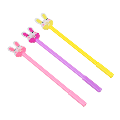 Ручка гелевая, наконечник в форме зайки - пончика, 3 цвета корпуса, 19,5см, силикон, пластик
