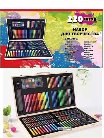 Набор для творчества" художественный набор на 220 предметов в самом элегантном и практичном деревянном чемоданчике, подходящем и мальчикам и девочкам безупречный подарок или сюрприз для своих любимых творческих талантливых деток!