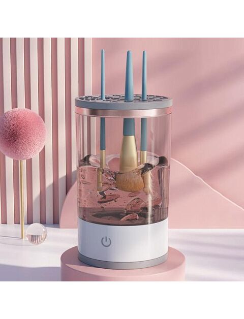 Электрическая мойка для кистей - это удобное устройство, которое позволяет легко и быстро очищать кисточки от пыли и грязи, которые накапливаются при нанесении макияжа. Она оснащена специальным мотором, который создает ультразвуковую вибрацию, помогая избавиться от загрязнений, которые обычно трудно удалить с помощью ручной мойки. Круговое вращение воды легко очищает, не повреждая кисть. Больше не нужно тратить время на ручную чистку с помощью коврика или салфеток.