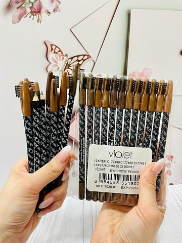 Набор карандашей для бровей разных оттенков 12шт VIOLET Eyebrow Pensil designer