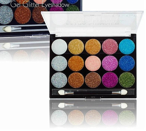 Глиттерные тени это 15 роскошных оттенков для того, чтобы создать яркий, стильный безупречный и во всех отношениях прекрасный макияж глаз. Это возможность для экспериментов вечернего мейкапа. Тени подойдут и для подиума или творческой бьюти-съемки, оформления торжественных макияжей, а также для проставления акцентовых бликов.