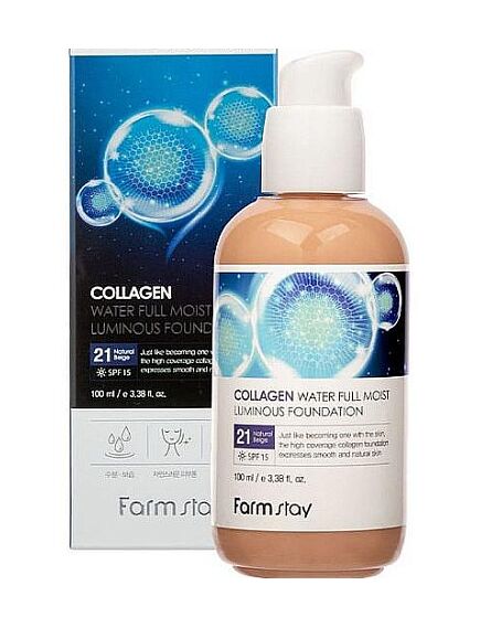 FarmStay Тональный крем для лица SPF 15 Collagen Water Full Moist Luminous Foundation (тон 21 natural beige)