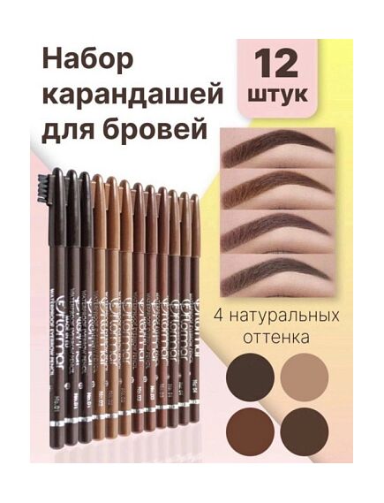 Набор карандашей для бровей Flormar универсальных оттенков 12шт