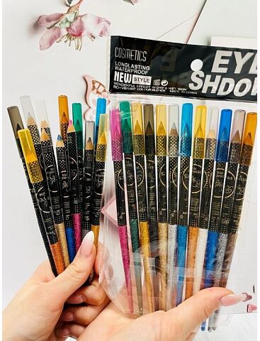 Набор карандашей с блёстками для макияжа глаз разных оттенков 12шт EYE SHDOW