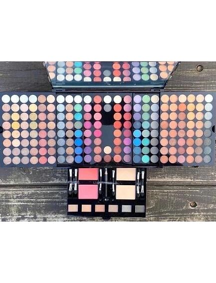 В этой палитре пудра, румяна, аппликаторы для теней + зеркало. Сочетание матовых и шиммерных оттенков. Пигментация роскошная.180 цветов теней для век