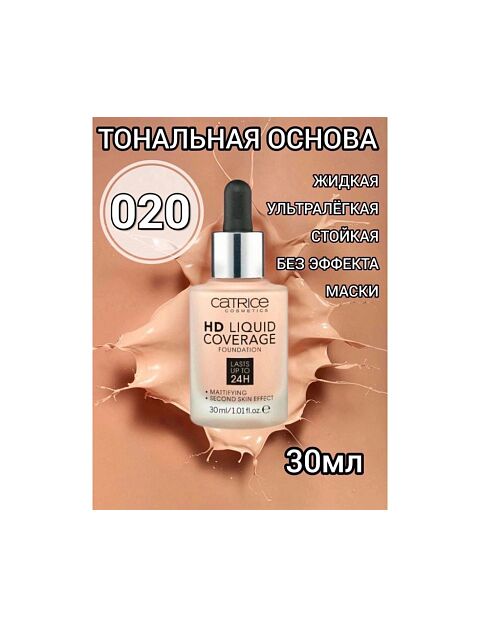 Тональная основа HD Liquid Coverage Foundation Catrice (тон 020)