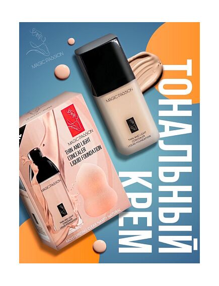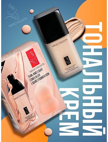 Тональный крем MAGIC PASSION Concealer Liquid Foundation + спонж для нанесения 30мл