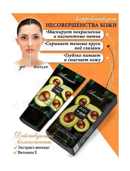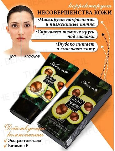 Тональный ВВ-крем с экстрактом авокадо Zozu BB Avocado Beautycushon Cream подходит для всех типов кожи, увлажняет, питает и матирует кожу лица, идеально перекрывает тёмные круги под глазами, убирает покраснения на лице, пигментацию и другие несовершенства. Крем подстраивается под тон кожи, при этом не пересушивает ее. Можно использовать как консилер. Тональный крем обеспечивает долговременный уход и обладает высокой покрывающей способностью.