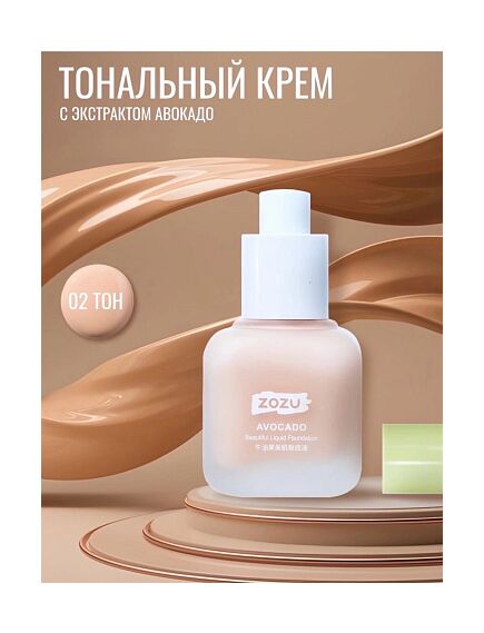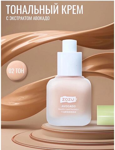 ZOZU Тональный крем для лица AVOCADO Beautiful Liquid Foundation (оттенок 02) 40 мл