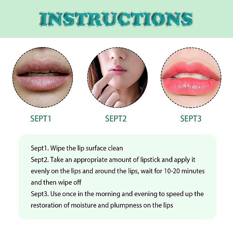 3. Используйте один раз утром и вечером, чтобы ускорить восстановление влаги и пухлости на губах. -